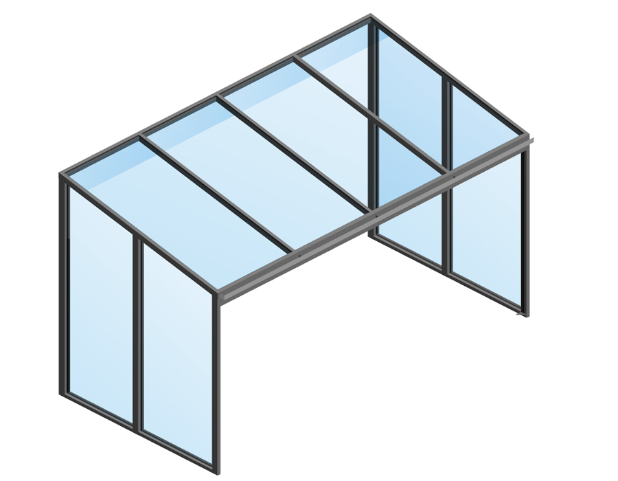 Die Wintergärten bestehen aus hochwertigen Aluminium-Elementen in der gleichen Beschichtung wie Ihr Terrassendach. Das Front-Element besteht aus einer vierteiligen Schiebetüre, wovon die mittleren beiden Schiebeelemente nach Außen geschoben werden können. Die Elementbreite ist abhängig von der Dachbreite.